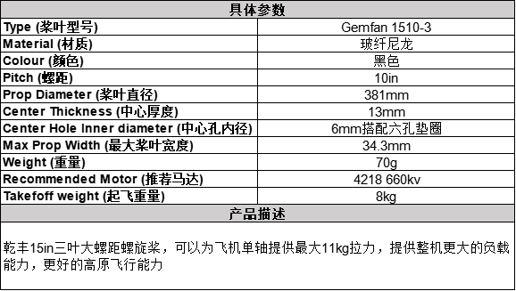 Prop Diameter (桨叶直径) 381mm